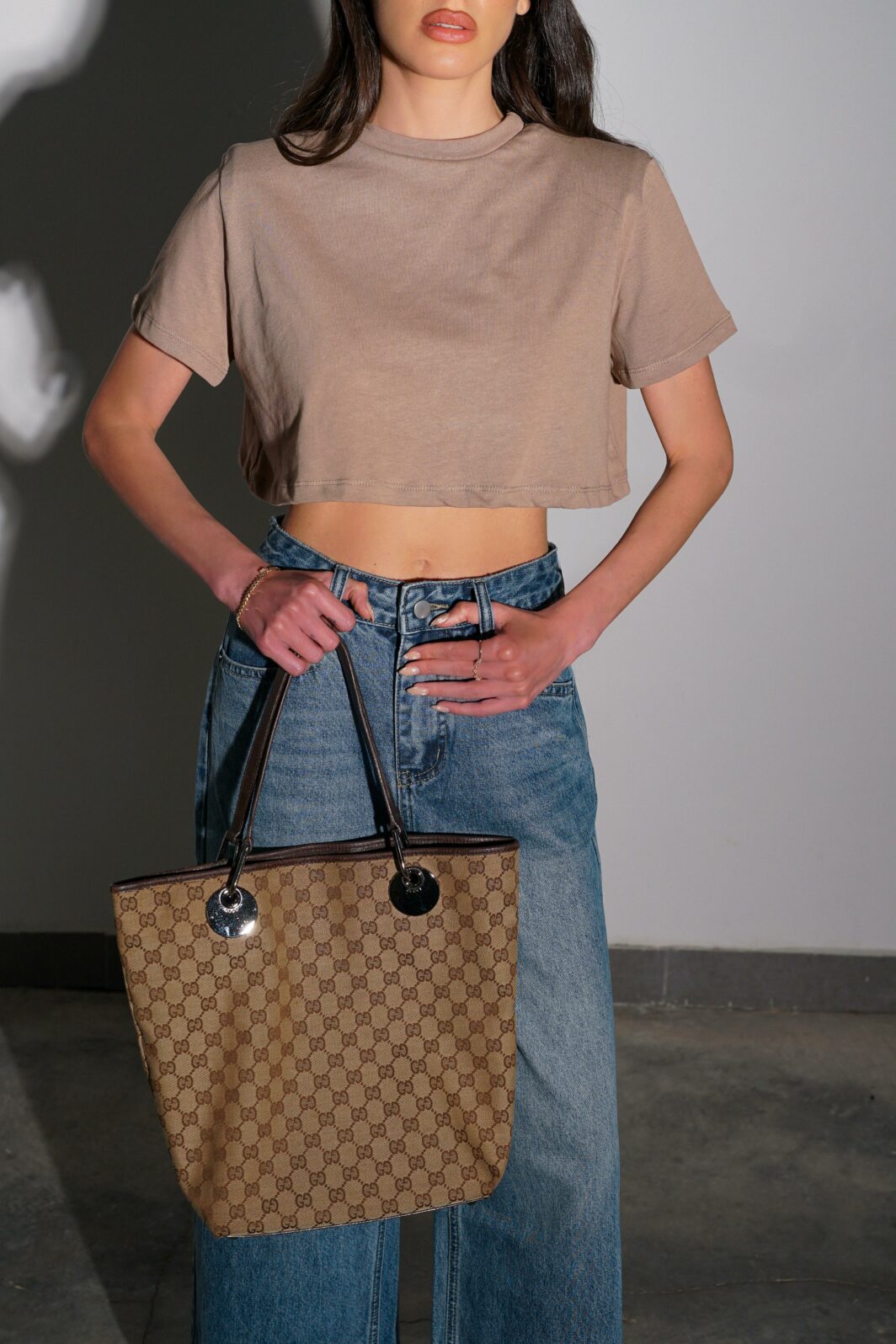 חולצת קרופ בייסיק כריות מילי קצרה – מוקה