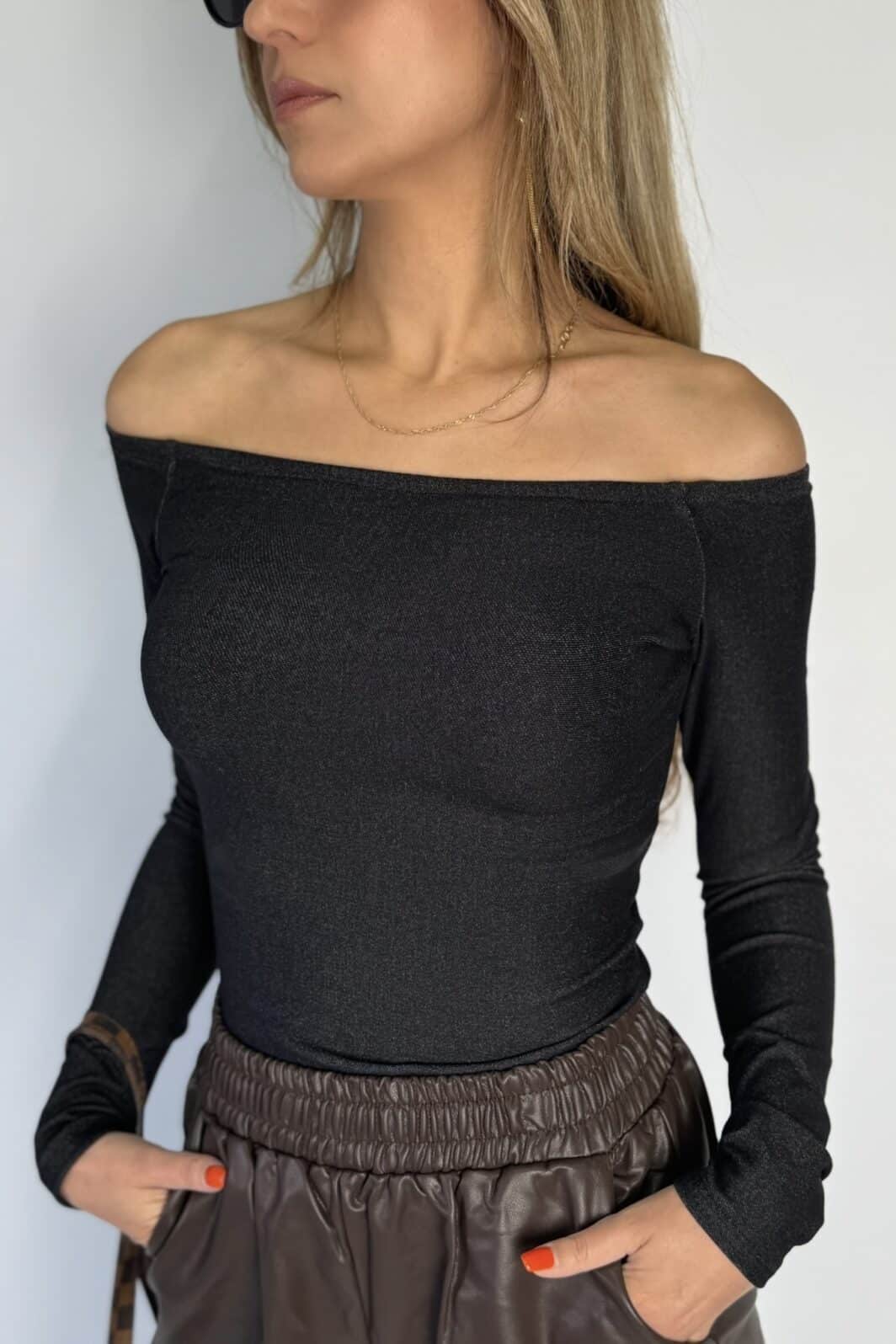 בגד גוף סאם – הדפס ג׳ינס שחור
