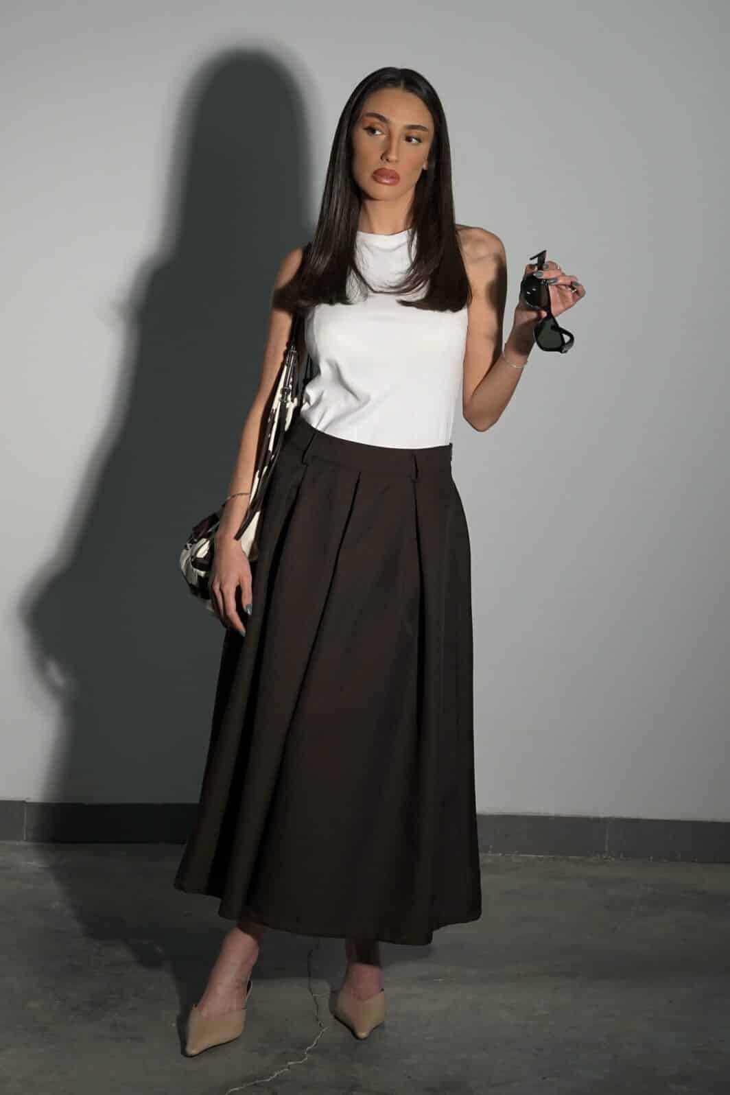חצאית מקסי בגזרה מחויטת ורחבה עם כפלים.
