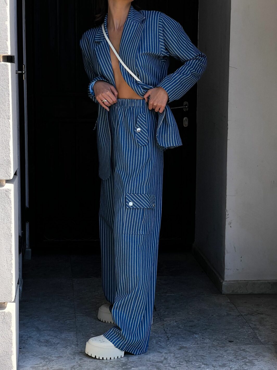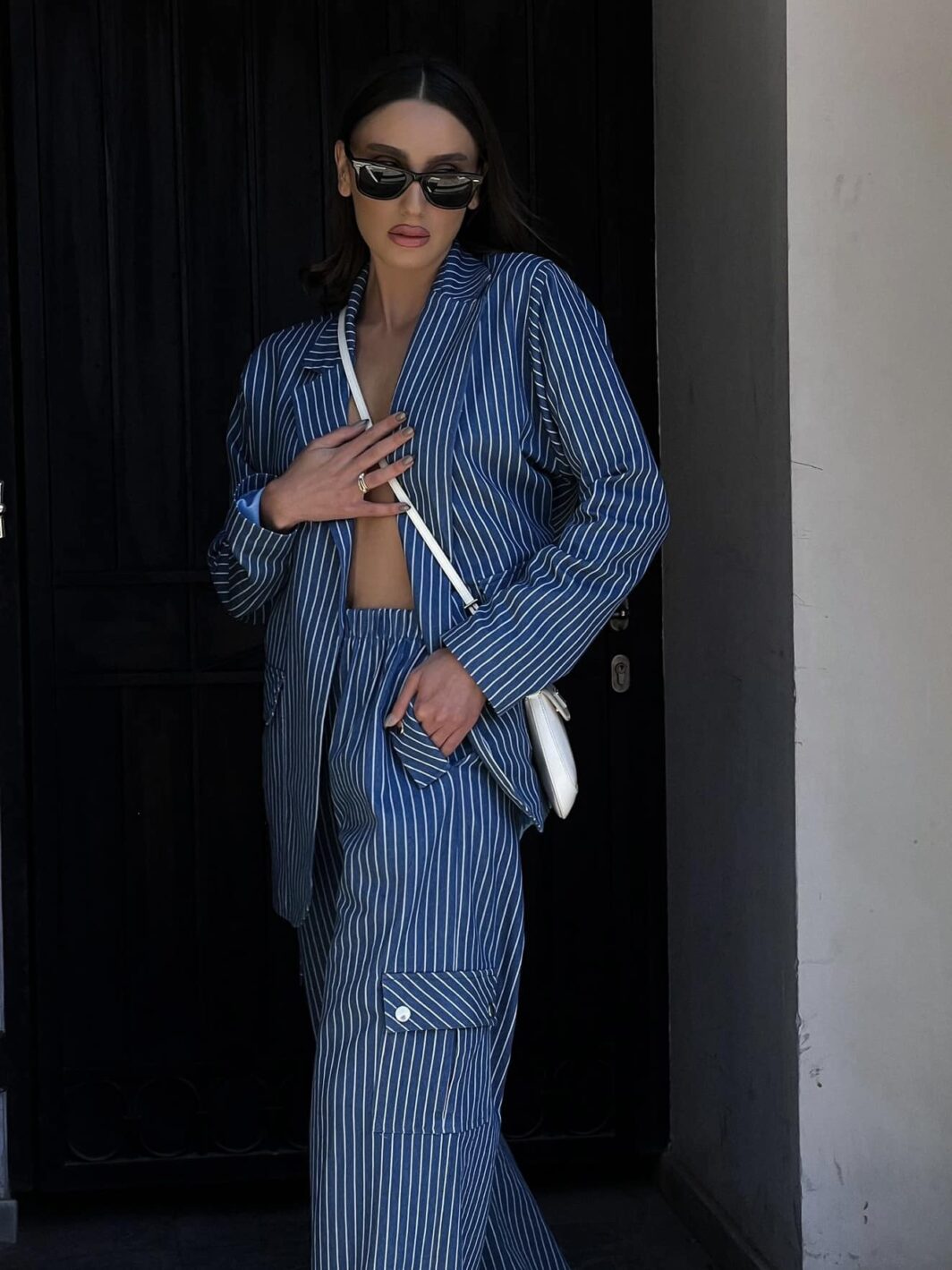 חליפת מכנס אמור – כחול ג׳ינס פסים